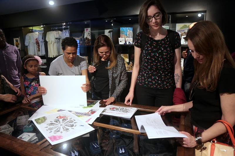 As 27 ilustrações ampliadas podem ser vistas no térreo e no mezanino da loja. A presidente da Fundação Cultural estuda a ideia de fazer exposições itinerantes de Curitiba de A a Z.