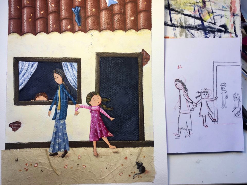 4: Descubra os melhores horários para trabalhar. Quando meus filhos estão na aula, aproveito para o que precisa de mais concentração. Deixo para ler e-mails, whatsapp, trabalhar em atividades relacionadas a ilustração, mas que não precisam de foco, para quando tenho que dar atenção a eles. Peço opinião a meus filhos e marido sobre o trabalho que estou fazendo. Peço a minha filha que me dê dicas de como compor uma ilustração, que desenhe comigo, dou tarefas. Algumas ela aprecia, outras não, mas algumas vezes eu até faço a ilustração do jeito que ela sugeriu. Veja só o esboço que ela fez pra mim: