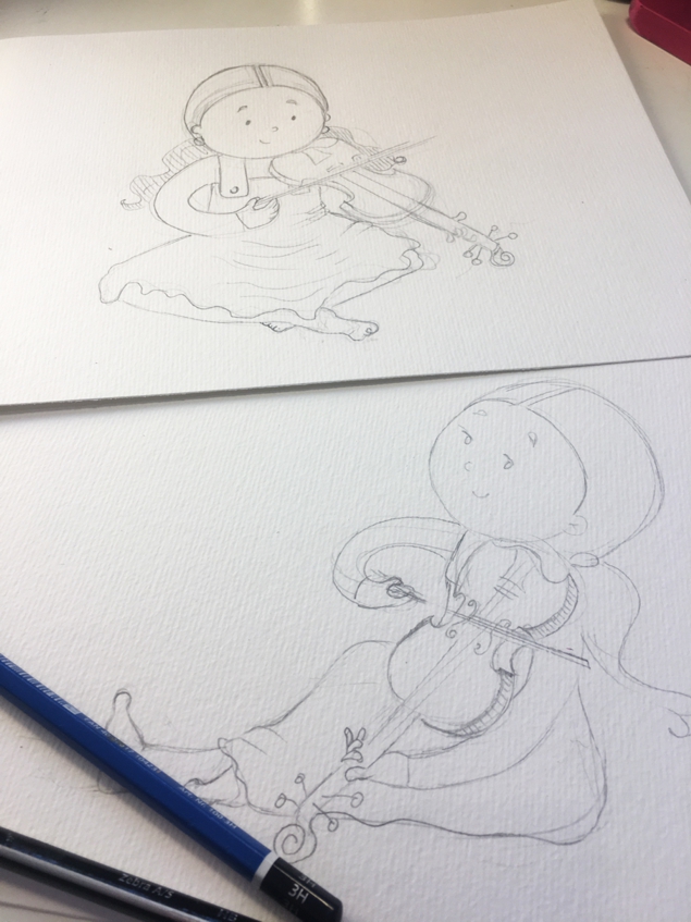 Eu estava em dúvida quanto a dois esboços que fiz para uma parte do texto. Como não consegui chegar a uma conclusão sobre qual seria a melhor opção, acabei finalizando os dois. Abaixo os esboços e uma das ilustrações finalizada.