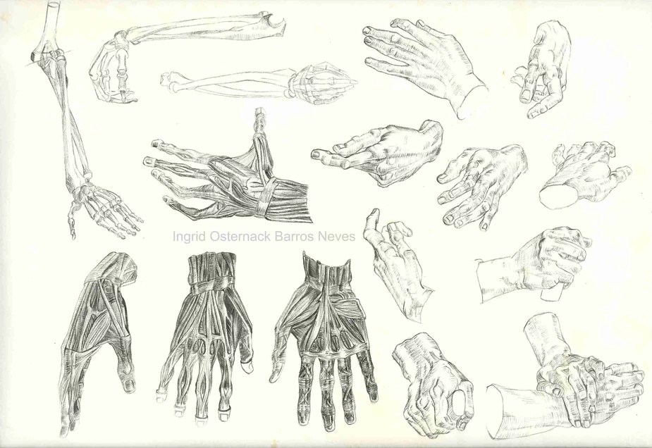 Em muitas faculdades, estudamos anatomia artística por vários anos, às vezes em todos os anos. Esse foi o meu caso. Tive Anatomia como disciplina pelos 4 anos de minha graduação em Belas Artes. Veja alguns estudos que fiz durante esse tempo.