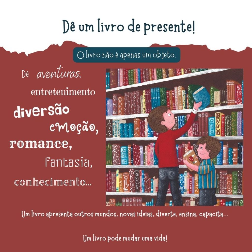 O livro infantil possibilita a apresentação de outros mundos à criança. Muitas crianças só vão conhecer outros lugares e culturas através do livro. E o livro infantil é o primeiro passo em direção a esse interesse. O livro incita a curiosidade, apresenta palavras novas, auxilia a comunicação entre pais e filhos, ensina atitudes e auxilia a criança a questionar sobre assuntos que ela tem curiosidade. Com diz na imagem que criei: o livro proporciona aventuras, diversão, fantasia, entretenimento, romance, emoção, conhecimento… apresenta outras culturas, novas ideias, diverte, ensina, capacita, transformação de vidas…
