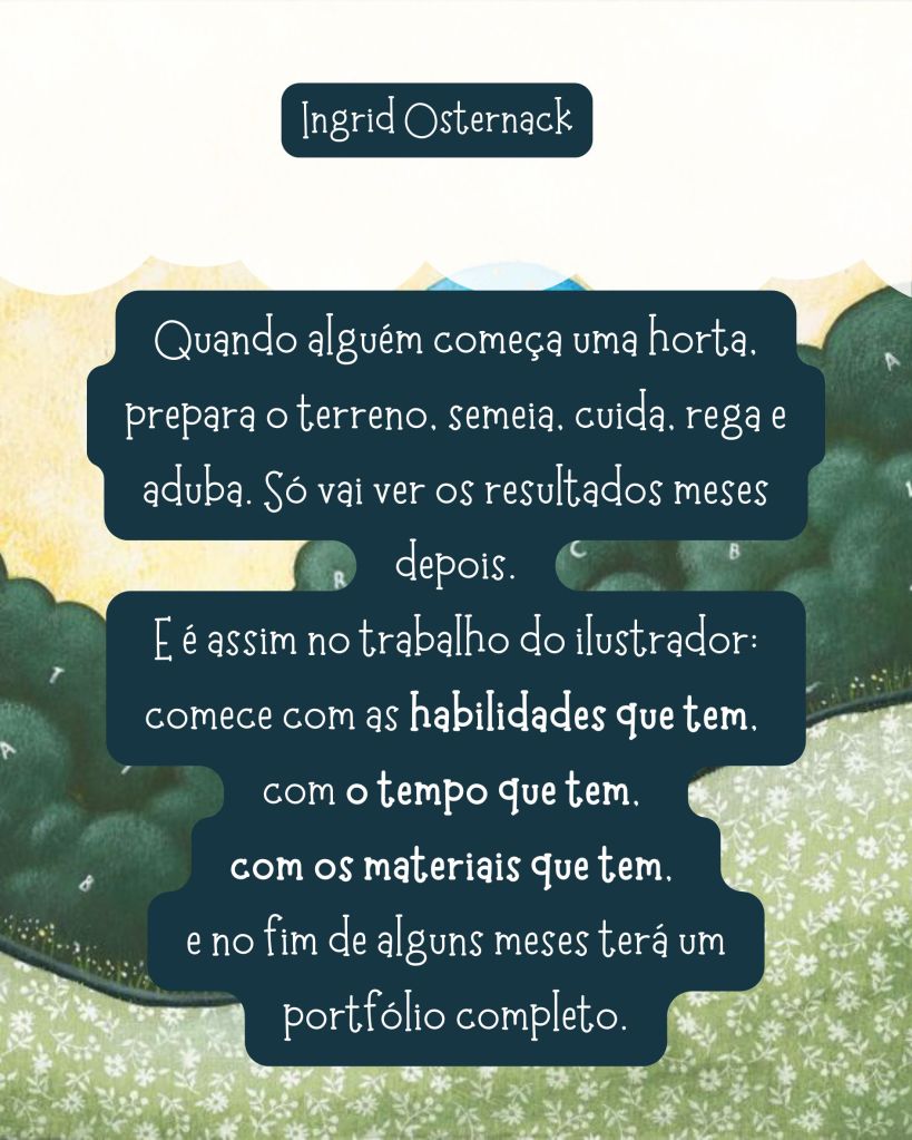 Por fim, é preciso paciência, pois depois que tiver plantado sementes por todo lugar, frequentemente, uma hora suas “plantas”, que são suas ilustrações, vão começar a dar frutos.